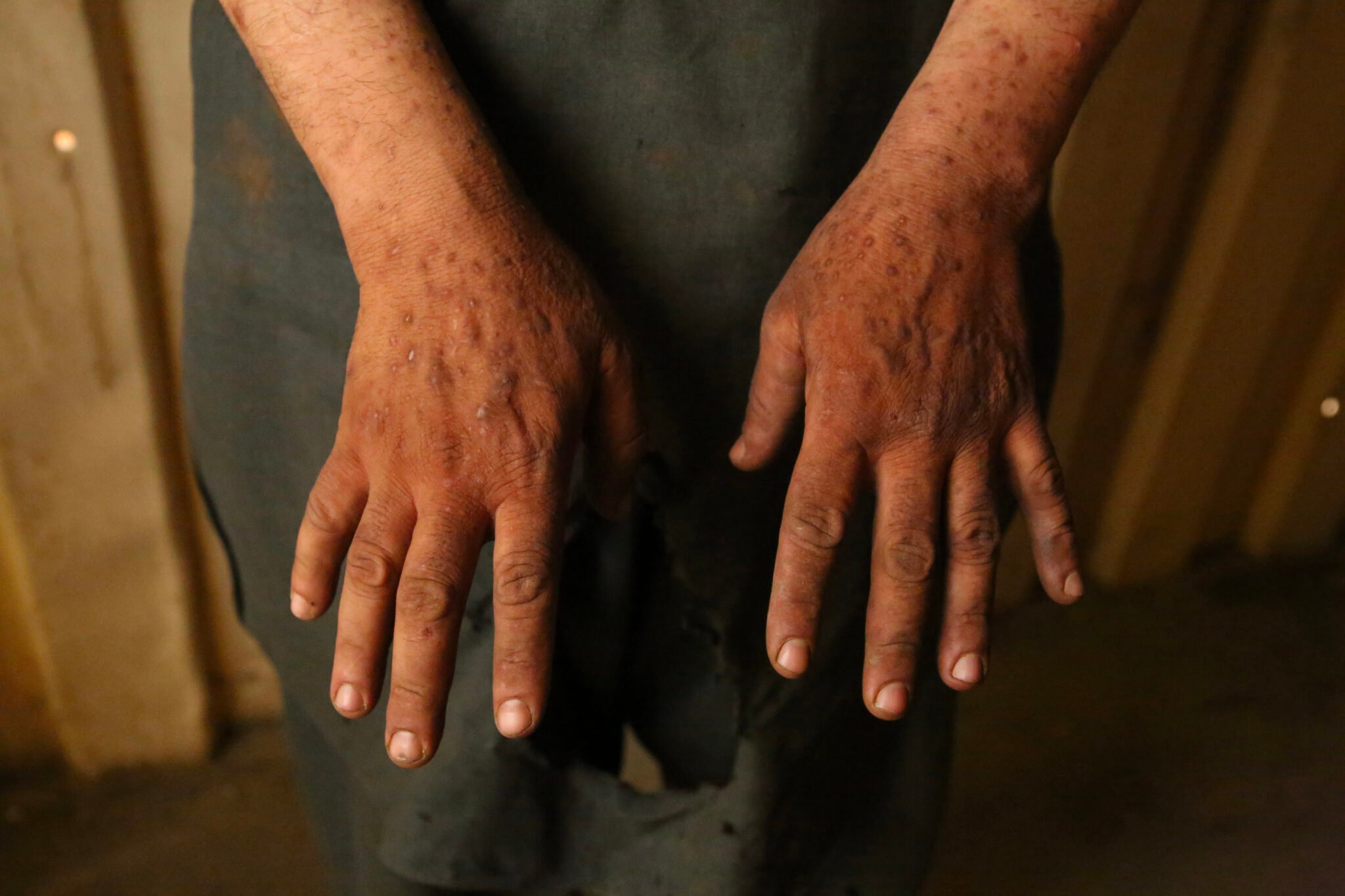 For the past five years, Esanullah has suffered from breathing problems, and his hands are riddled with a rash that started two years ago.