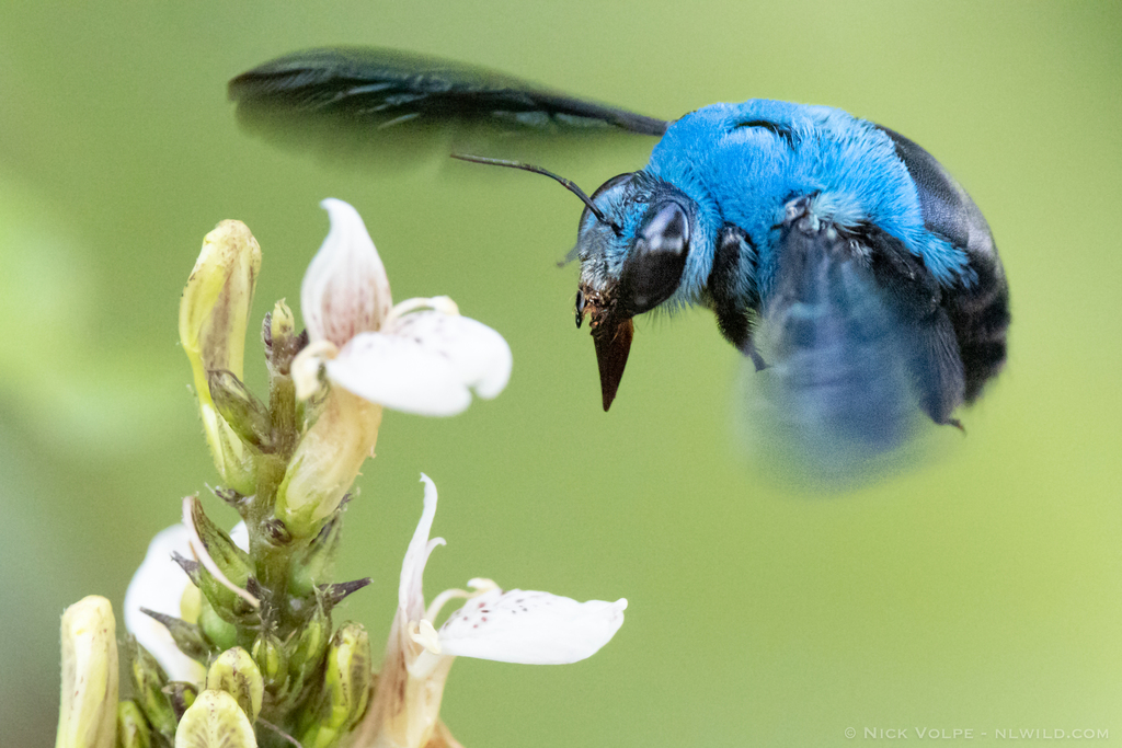 Bees come in a rainbow of colors beyond yellow, including green, violet, white, and black, but the cerulean hue of these bees makes them popular among bug specimen collectors.