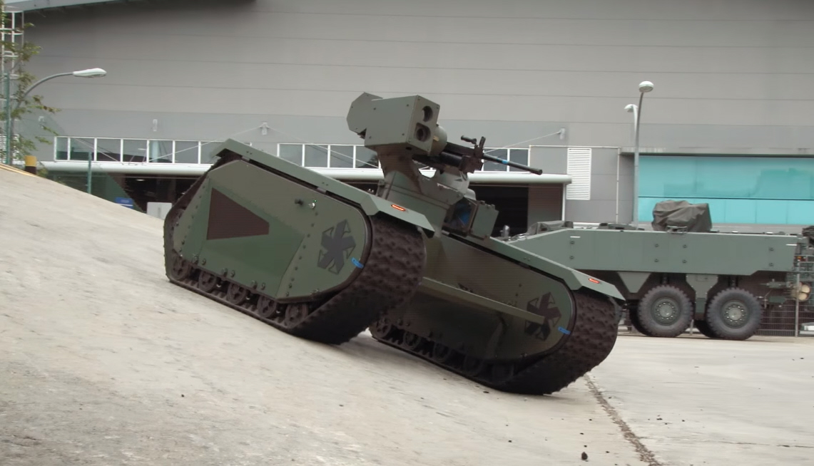 When robots go to war, they will be short, squat, and in bodies unlike those of humans. Estonian company Milrem’s new ground robot has no gleaming silver skull, no pointy battledroid face, and no blinking Cylon eyes. Instead, Mirem’s Tracked Hybrid Modular Infantry System (or THeMIS), which debuted at this year’s Singapore Air Show, is a simple green platform on tracks.
