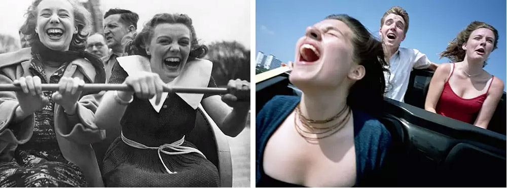 Right: Friends riding a roller coaster Chris Ware/Getty Images; Bill Varie/Getty Images