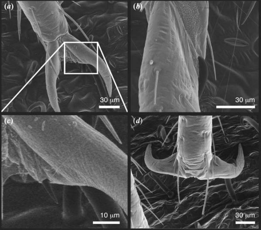 In the forties, scientists from the US Department of Agriculture showed that the small hairs on the leaves, called trichomes, might work like the hooked side of a Velcro strip by grappling the stiff hair on bed bugs’ legs. The California scientists proved this wrong by looking at bugs stuck to bean leaves under powerful scanning electron microscopes. At the conference, I was transfixed by an image that showed the sharp trichomes actually piercing a bed bug’s foot like meat hooks, tortuously immobilizing it. A synthetic version, the scientist suggested, could be manufactured and sold as a trap.