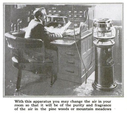 Before air conditioners became commonplace, we touted this portable heating/refrigerating plant as a convenient appliance for those who needed a little relief from the summer heat. The machine could not only emit both coolness and heat, but it could adjust the humidity level of your immediate surroundings — hence the option of instilling a “mountain meadow” atmosphere into your otherwise stuffy living room. Tubes filled with calcium chloride would dry out the air, while an electrically-powered suction fan could push the air through a watery reservoir to create a refreshing little breeze.