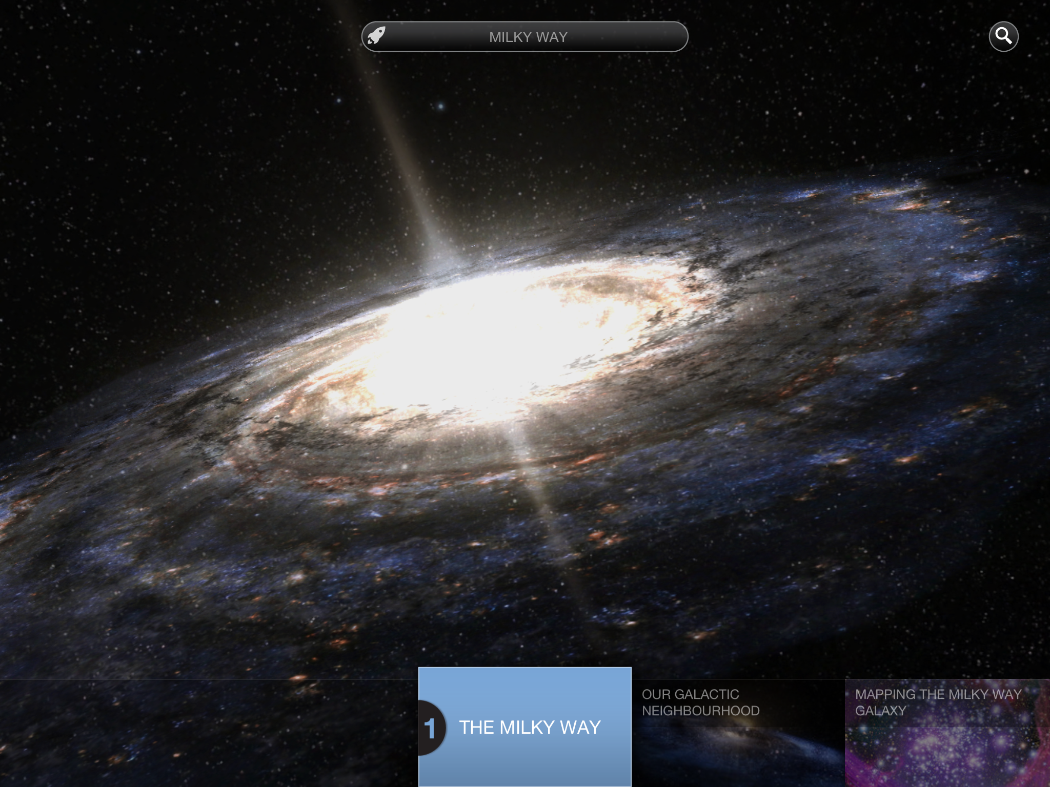 Wonders, which launched this morning and costs $6.99 (for a limited time), is astounding. Most of the screen is taken up with a zoomable 3-D universe, bright dots of activity on a velvet-black background. There’s a navigation bar up at the top that takes you to sections that include “Sub Atomic,” “Atomic,” “Solar System,” “Stars,” “Milky Way,” “Galaxies,” and “Universe.” Tap those and you’ll be zoomed off to the start of the chapter.
