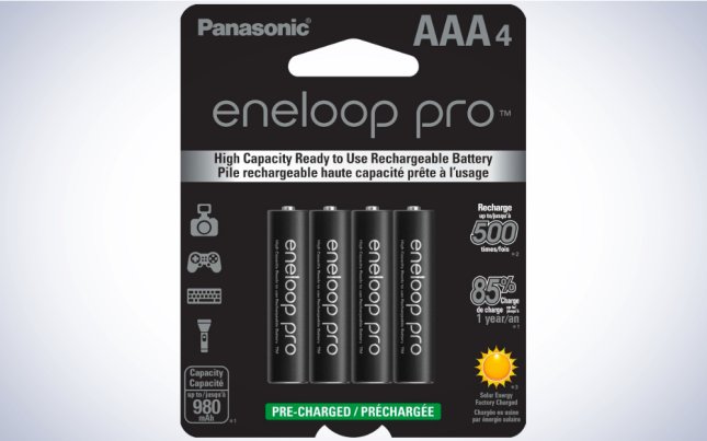 This makes them useful with tools in your emergency supplies kit or high-drain devices like camera flashes and drones. Naturally, they’ll also power smaller draw electronics like wireless keyboards and mice for months or years without having to be topped up. Panasonic says the Eneloop Pro AAA Batteries can be recharged up to 500 times.