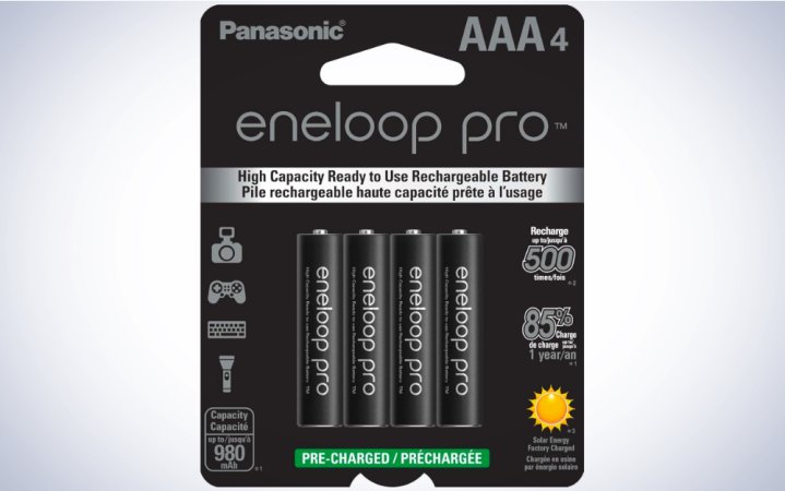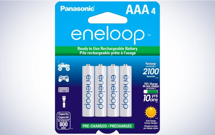 Spending close to $20 on a four-pack of AAA batteries may seem foolish, but the Eneloop Pros will pay for themselves over time. Unlike many NiMH AAA batteries, the Panasonic Eneloop Pros come ready to use, pre-charged using environmentally friendly solar power. Over a year, they will retain up to 85 percent of their charge, so they can be trusted to perform when required.