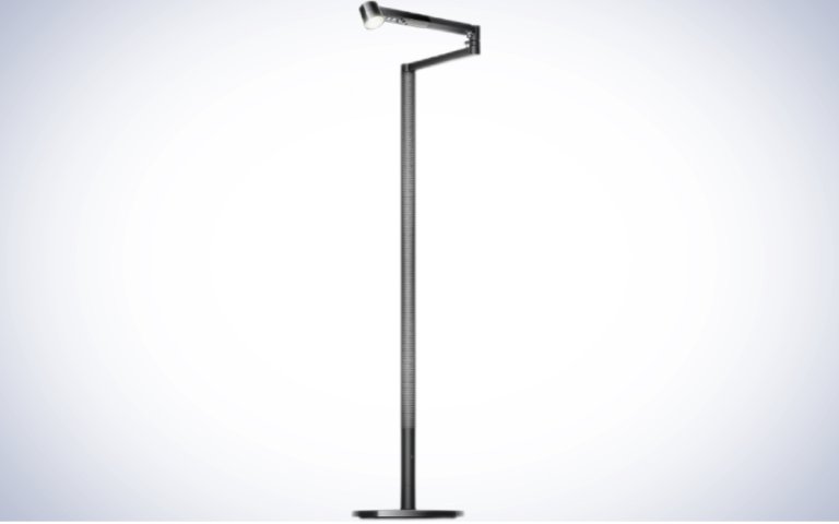 The Dyson Solorcycle Morph isn’t as tall as most floor lamps, but that’s a minor issue for a premium lamp with high-tech features that tower over the competition. This smart-home accessory features several very handy modes, all controlled via Bluetooth through the Dyson smartphone companion app. Use it as a glare-controlled, low-optical flicker task light at a desk or reading/studying nook, or rotate the head for some indirect light. Want to highlight some treasured art, family portraits, architectural details, etc.? Revolve it further—it adjusts at the stem, elbow, and head—and increase the brightness for a feature light, or magnetically dock the optical head above the perforated stem to bask the room in a warm, relaxing ambient light with reduced blue light.