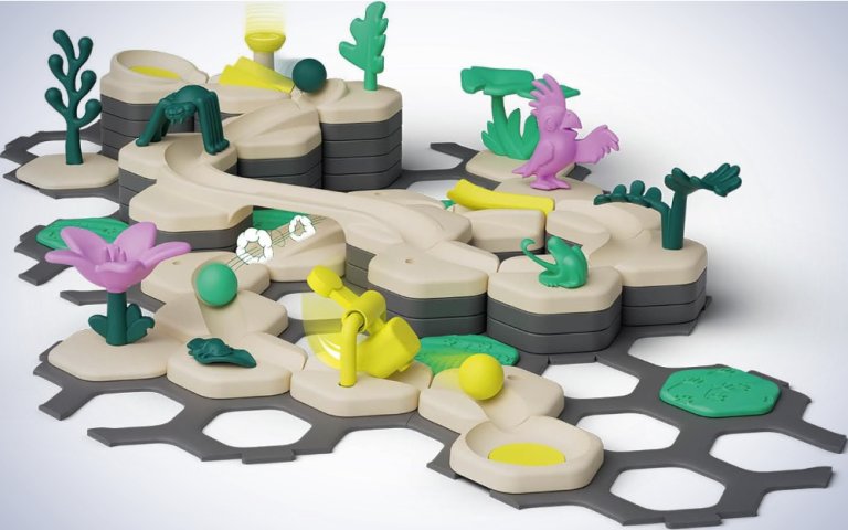 The traditional childhood favorite, the marble run, has been modified for younger kids with larger, easier to hold, marbles and the addition of jungle animals. Kids start by building the baseplates then add elevated sections at different heights so that their marbles can journey between different imaginative worlds. Kids can collaborate with friends and family to build their unique designs, and as the GraviTrax system has a low profile, it’s easy for kids to use and enjoy, especially compared to older marble run designs that feature long drainpipes that are harder for younger kids to reach.