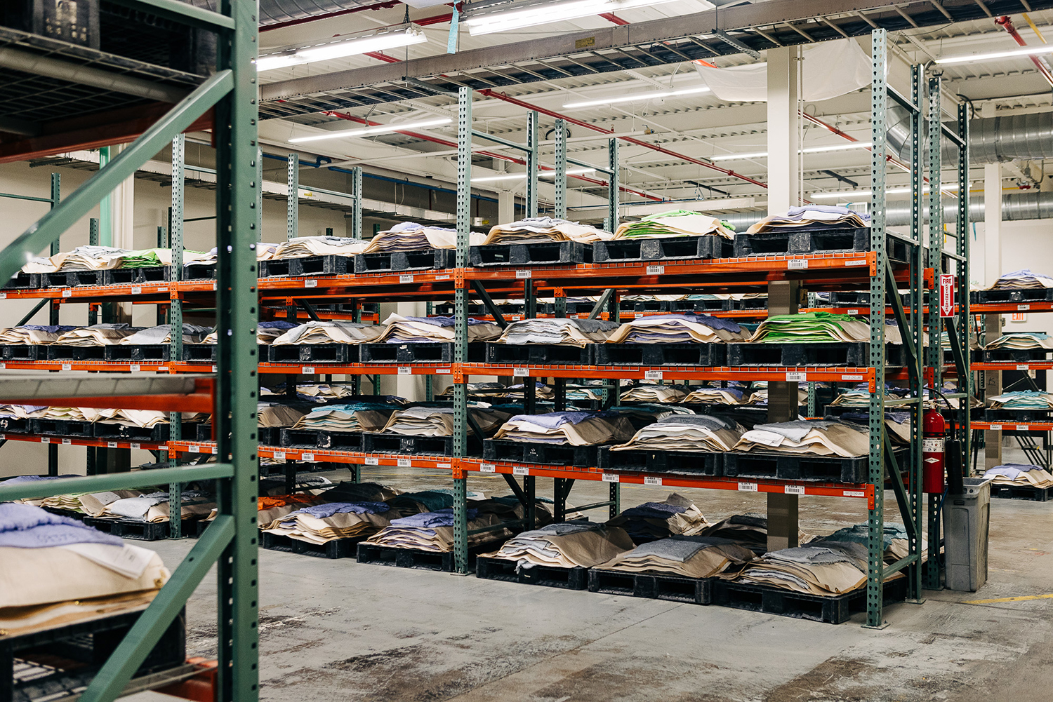 ↑ As a uniform substance, the material drops onto large metal rollers that cool it and create a sheet. A worker then cuts the flattened substrate by hand. From here, the pieces go to storage, while small samples head to Callaway’s on-site lab, where techs test the batch’s compression, among other key variables.