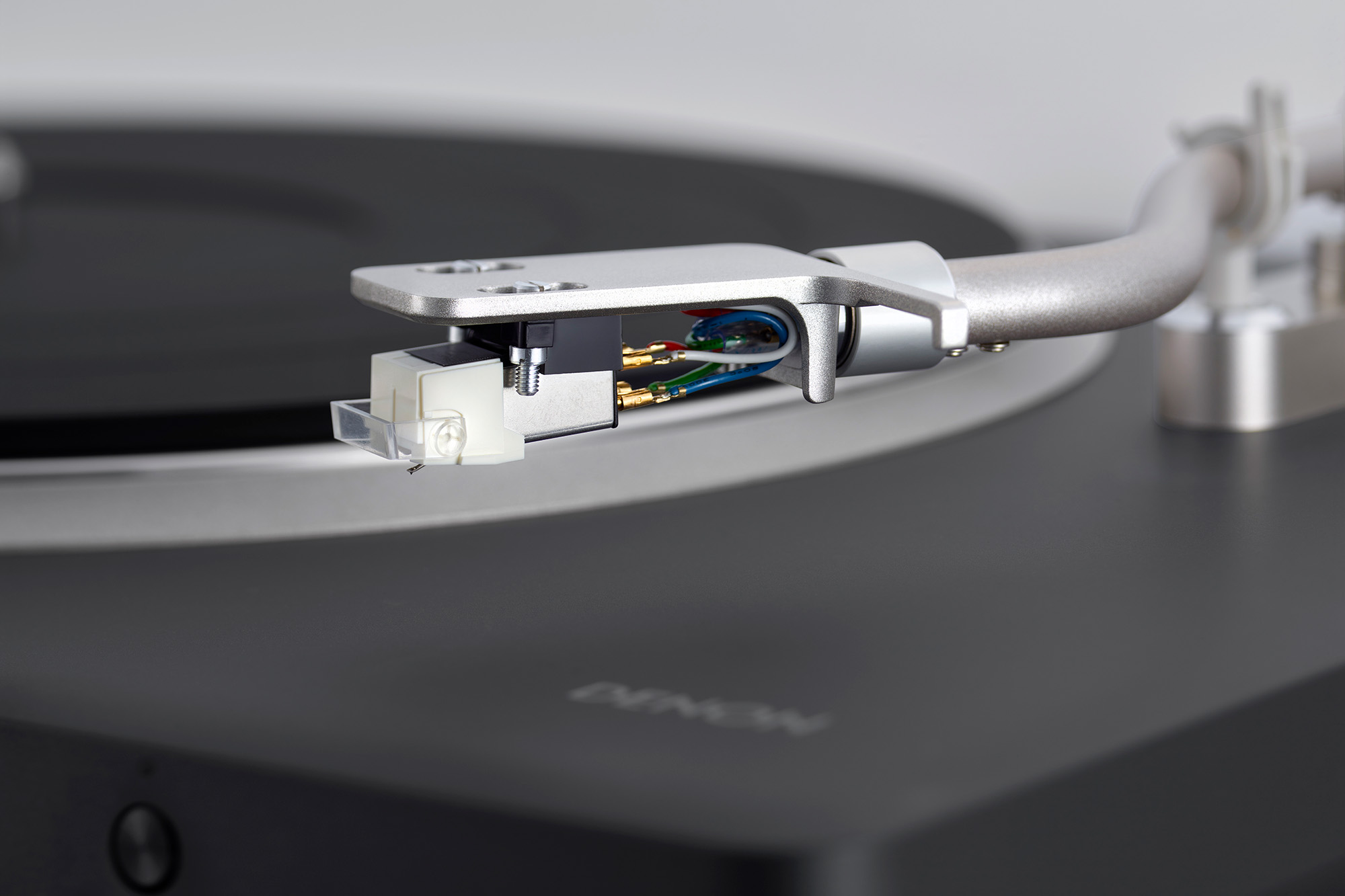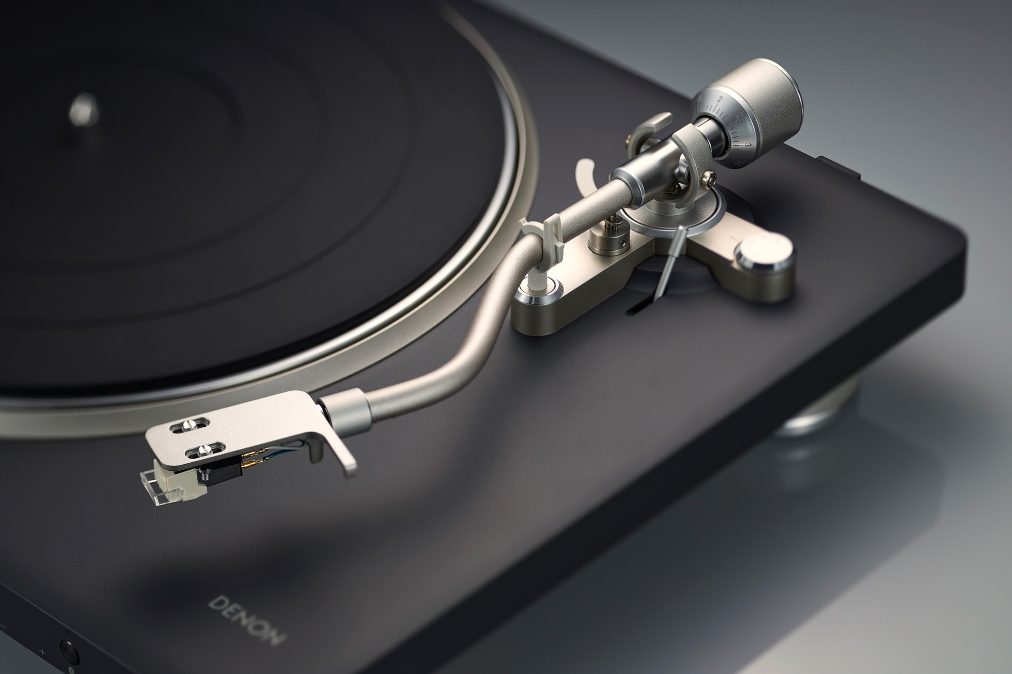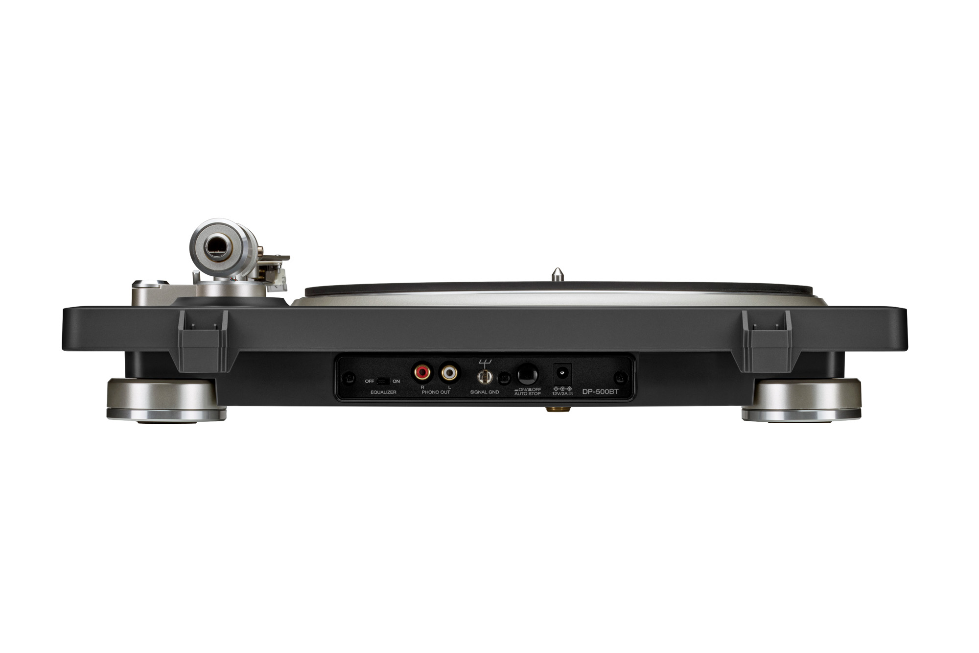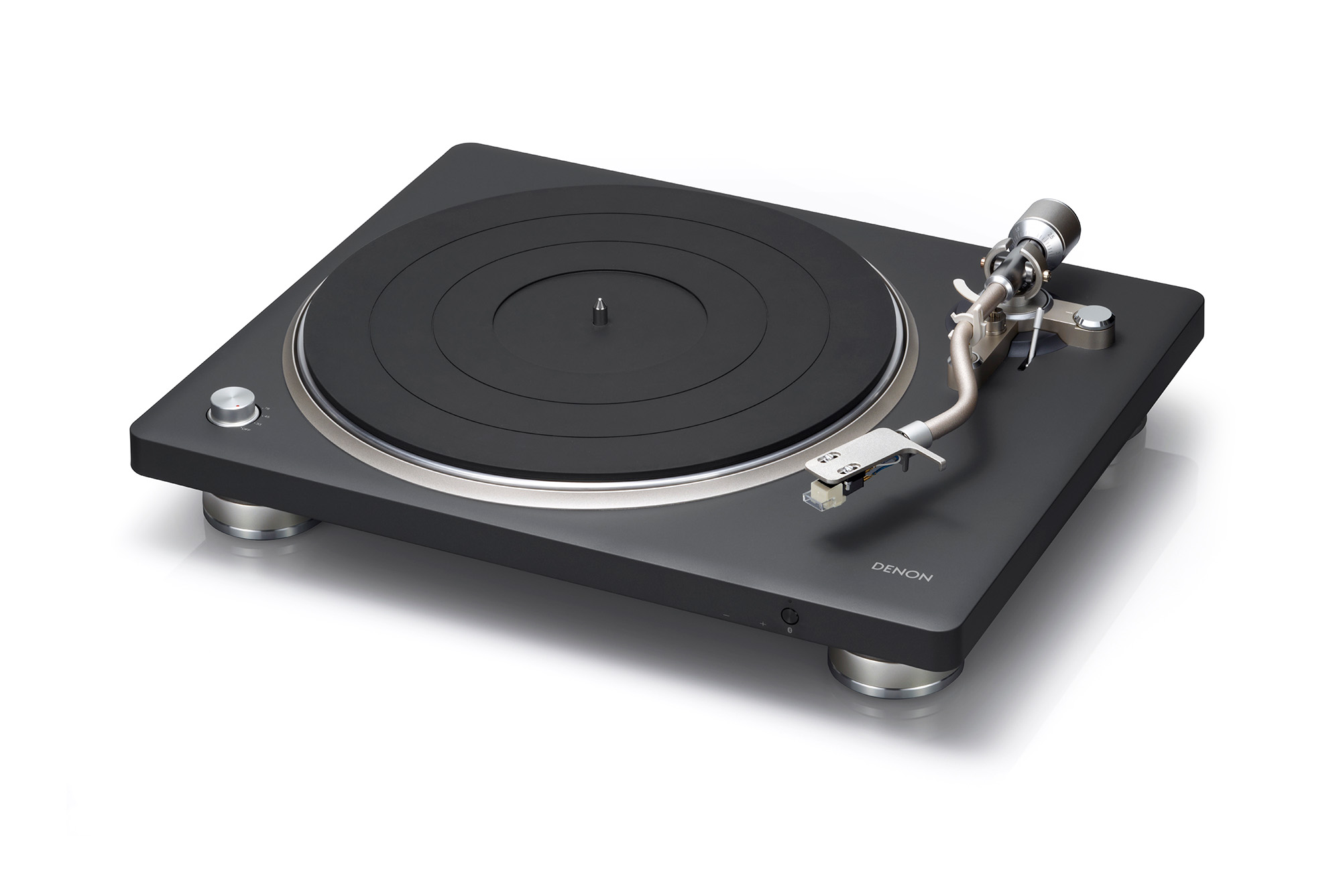 The DP-500BT is a belt-driven design, chosen for steady rotation and low mechanical intrusion at the price, with a die-cast aluminum platter, vibration-resistant chassis, and chunky isolation feet that give the 13.2 lbs., 16.7 x 14.4 x 4.65-inch package a planted, low-slung feel. The silhouette is understated rather than showy … furniture-grade, not fussy. Under the removable dust cover, Denon’s S-shaped tonearm is there for a reason beyond nostalgia: it helps the cartridge trace the groove with a little more poise and a little less drama, translating to cleaner channel separation and less fuzz around the edges. Wow and flutter is rated at 0.08%, which is the sort of number that matters less on paper than it does in practice … and you’ll hear steadier notes, stabler pitch, less shimmer where there shouldn’t be any. The included CN-6518 MM cartridge is pre-mounted and voiced to work with the built-in switchable phono stage, so out of the box, the sound should land where Denon wants it: warm, stable, and properly shaped rather than thin or splashy. (And the headshell is replaceable if you want to tweak tonality.) It spins 33 1/3, 45, and 78 RPM, and semi-automatic lift/stop keeps the ritual intact without asking you to babysit the stylus as it idles in the runout groove.