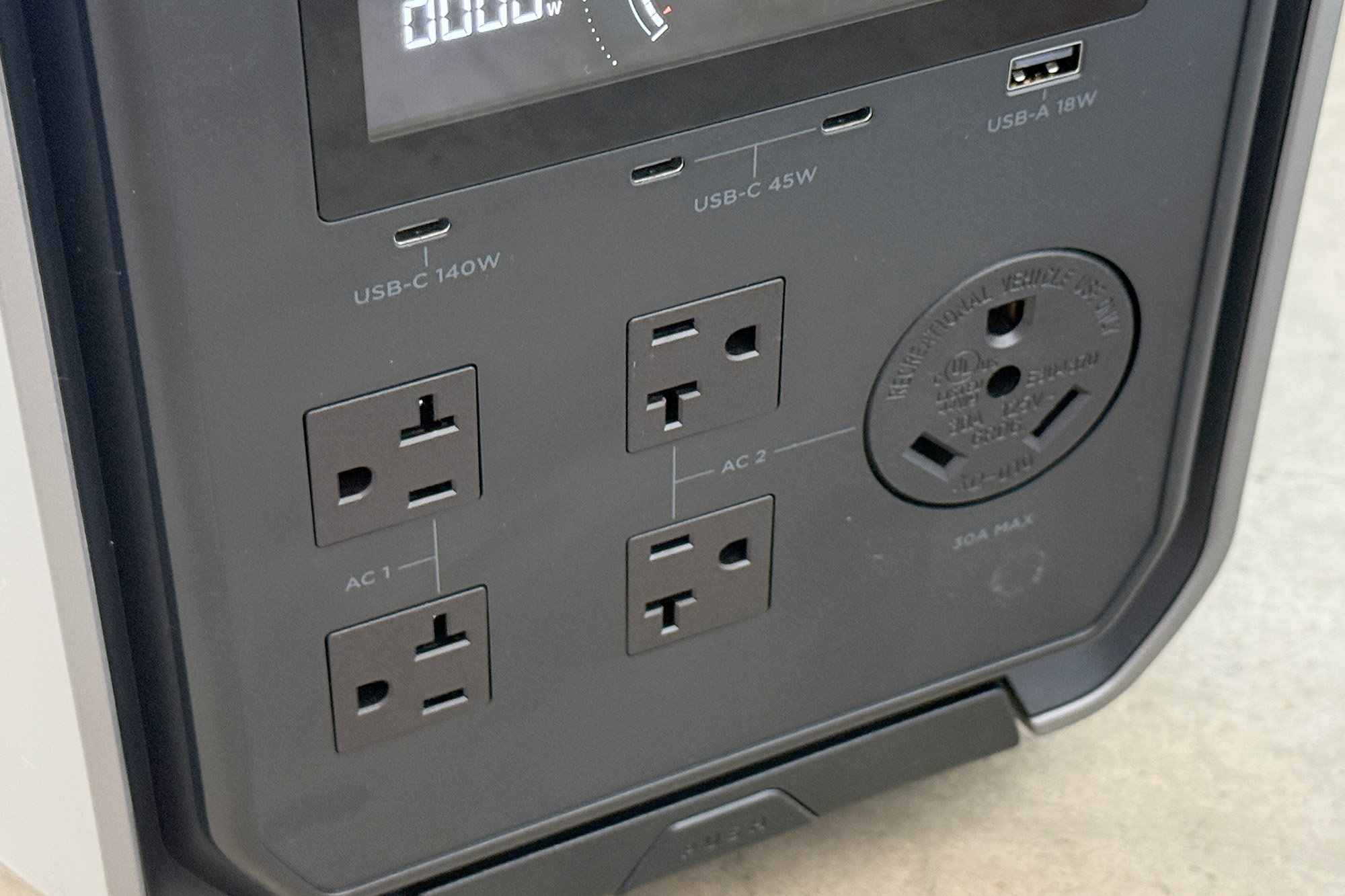 That’s all great, but what I really appreciate about the Delta 3 Ultra Plus is all the little touches. The sturdy telescoping handle and wheels make it effortless to cart around, and if you do have to lift its admittedly somewhat hefty 74 lbs, grab handles are well placed for the task. Dual AC on/off circuits improve its discharge efficiency. And it might seem silly, but I really love how the rear panel doors for the input ports slide into protective slots when in use. I can’t tell you how many times I’ve had similar little doors and covers snap off.