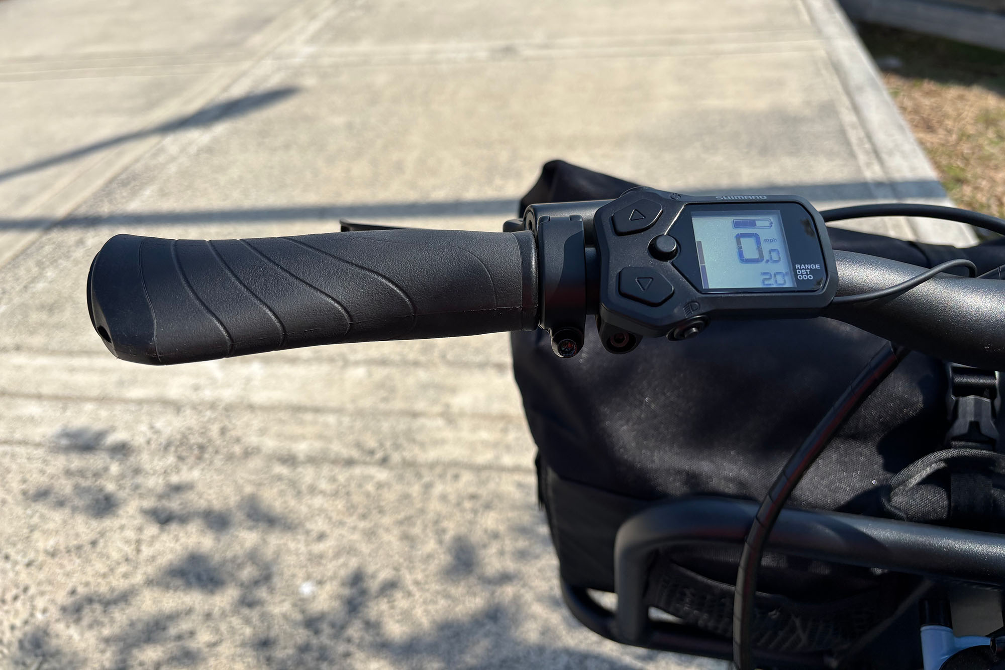 The Shimano Di2 automatic shifting plays into that. You’ve got three assist levels on the left and simple button shifting on the right. I found the first assist level worked well for groceries, while the second felt better with a full load of kids.