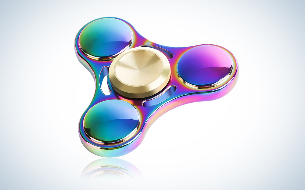 Rainbow! Fidget! Spinner! This one has a 5-7-minute “spin life” and is made of brass and copper, with a stainless steel bearing. The colors are mesmerizing. $8.