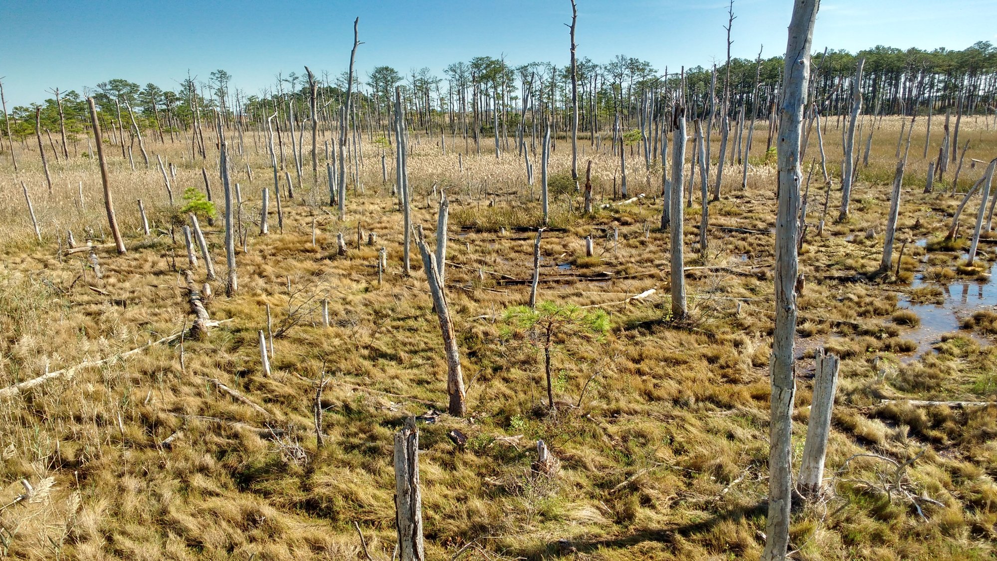 As the leaves and needles fall off these dying trees, a community of salt-tolerant marsh plants moves in. It’s not necessarily a bad thing. In fact, coastal wetlands are some of the most valuable ecosystems. These plants filter out pollutants and excess nutrients in the waters that flow into them, they protect shores from erosion by waves, and they store even more carbon than forests do. Coastal wetlands also slow floodwaters, protecting properties and lives from the destruction of storms. “If you’re looking for storm protection, tidal wetlands are a great thing to have,” says Gedan.