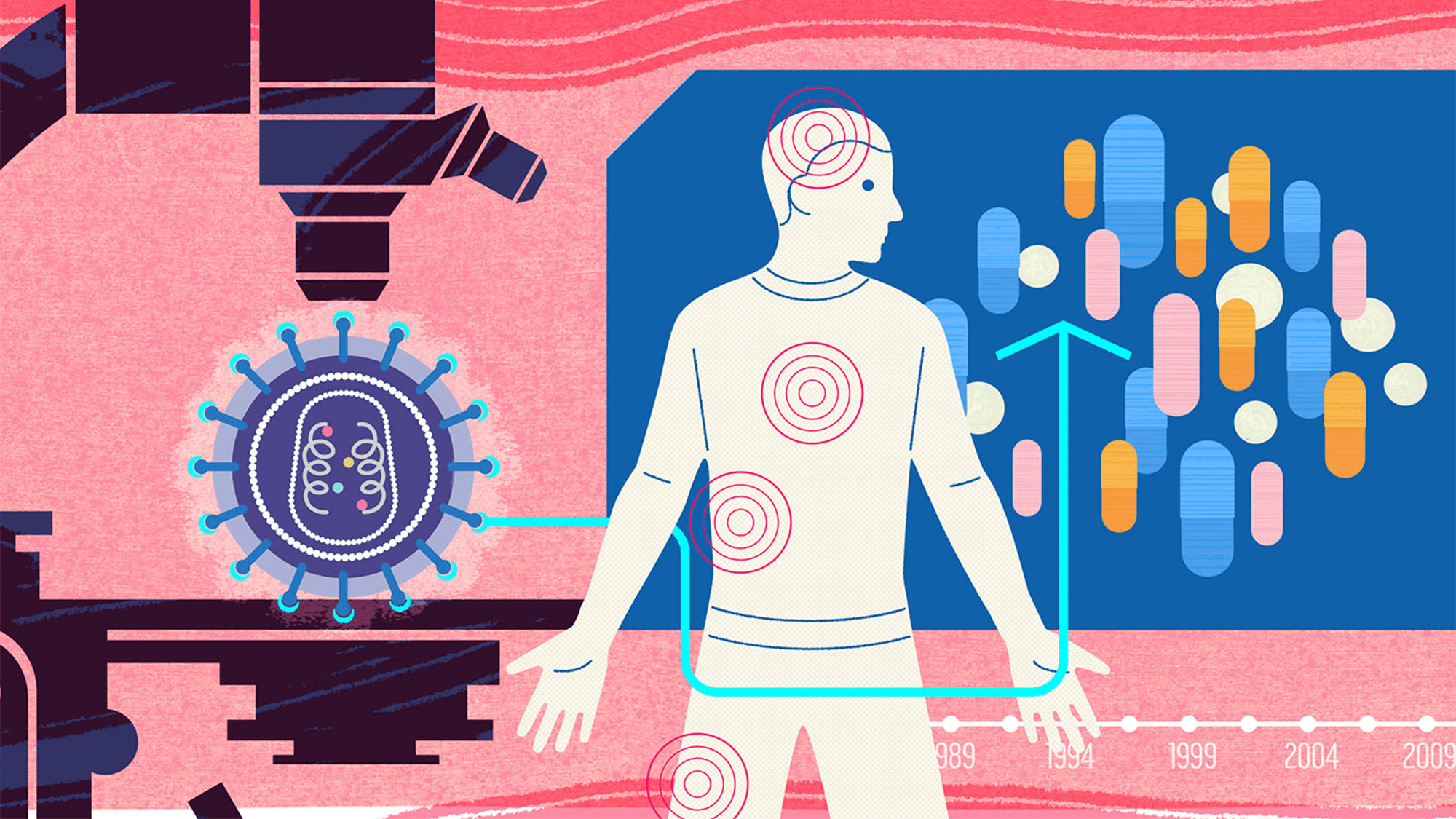 Medication connections, meanwhile, continue to emerge. Abacavir, to name one example, has recently been linked to cardiovascular disease, says Priscilla Hsue, chief of cardiology at UCLA Health. At the 2024 AIDS Conference, researchers reported that people who had taken the drug had a 50 percent greater risk of major cardiovascular problems such as heart attack and stroke, and those currently taking it had a 42 percent higher risk, compared to people on other antiretroviral treatments.