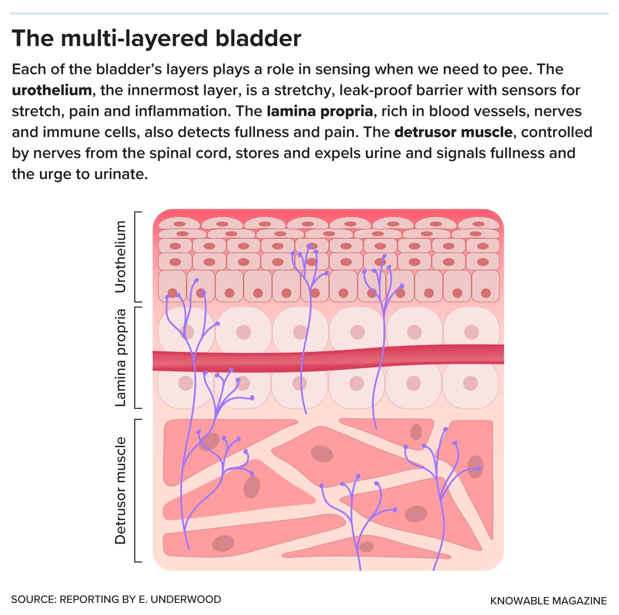 In addition to being mind-bogglingly complex, the system is also delicate. Scientists estimate, for example, that more than 1 in 10 adults have overactive bladder syndrome — a common constellation of symptoms that includes urinary urgency (the sensation of needing to pee even when the bladder isn’t full), nocturia (the need for frequent nightly bathroom visits) and incontinence. Although existing treatments can improve symptoms for some, they don’t work for many people, says Martin Michel, a pharmacologist at Johannes Gutenberg University in Mainz, Germany, who researches therapies for bladder disorders. Developing better drugs has proven so challenging that all major pharmaceutical companies have abandoned the effort, he adds.