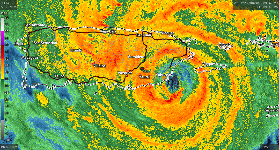 Some of that air ends up descending back down into the center of the storm, in an attempt to fill the great imbalance caused by the strong low-pressure center at the surface. This air warms up and dries out as it descends, creating the clear eye that makes these storms so easily recognizable from above. The eye of a storm can take on all different shapes and sizes. Some eyes are wider than entire islands, while some are just a couple of miles in diameter. As a storm grows stronger, its eye gets ever more defined.