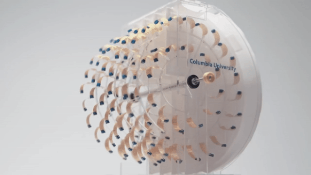 Ozgur Sahin, a biophysicist at Columbia and the paper’s senior author, has developed technology that uses spores from the harmless soil-dwelling bacterium B. subtilis to absorb and release water when the relative humidity of the surrounding air changes. At high humidity, the spores take in water and expand, and at low humidity they release water and contract. “In this process, they act like a muscle,” he said. “They are highly effective muscles, and it is possible to assemble spores into larger materials that move and generate force when humidity levels change.”