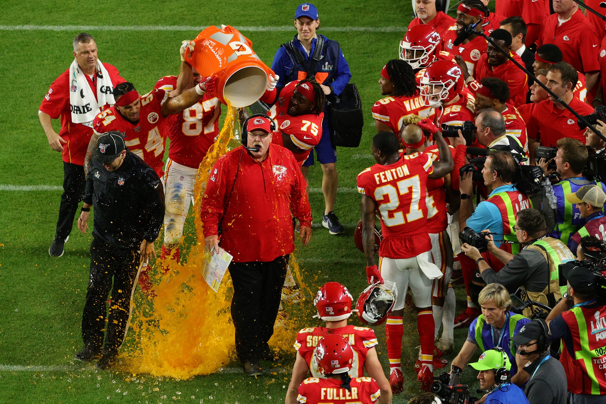 So combined, a troop of sweaty football players might produce a grand total of 41,745 mL of sweat per Super Bowl, or 11 gallons. That means one single, precious 10-gallon cooler of salty secretion—with a bonus gallon to make the dunking all the sweeter.