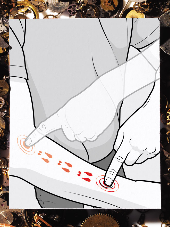 Everyone hates awkward pauses, and your brain is no exception. The mind’s eye will attempt to fill in dead spaces—though it’s not always very accurate. Try this: Have a friend give a few taps to your forearm, first near the wrist and then the elbow. Your noggin will confidently assert that something scurried up your arm. The prank even works when the middle of the forearm is numb.