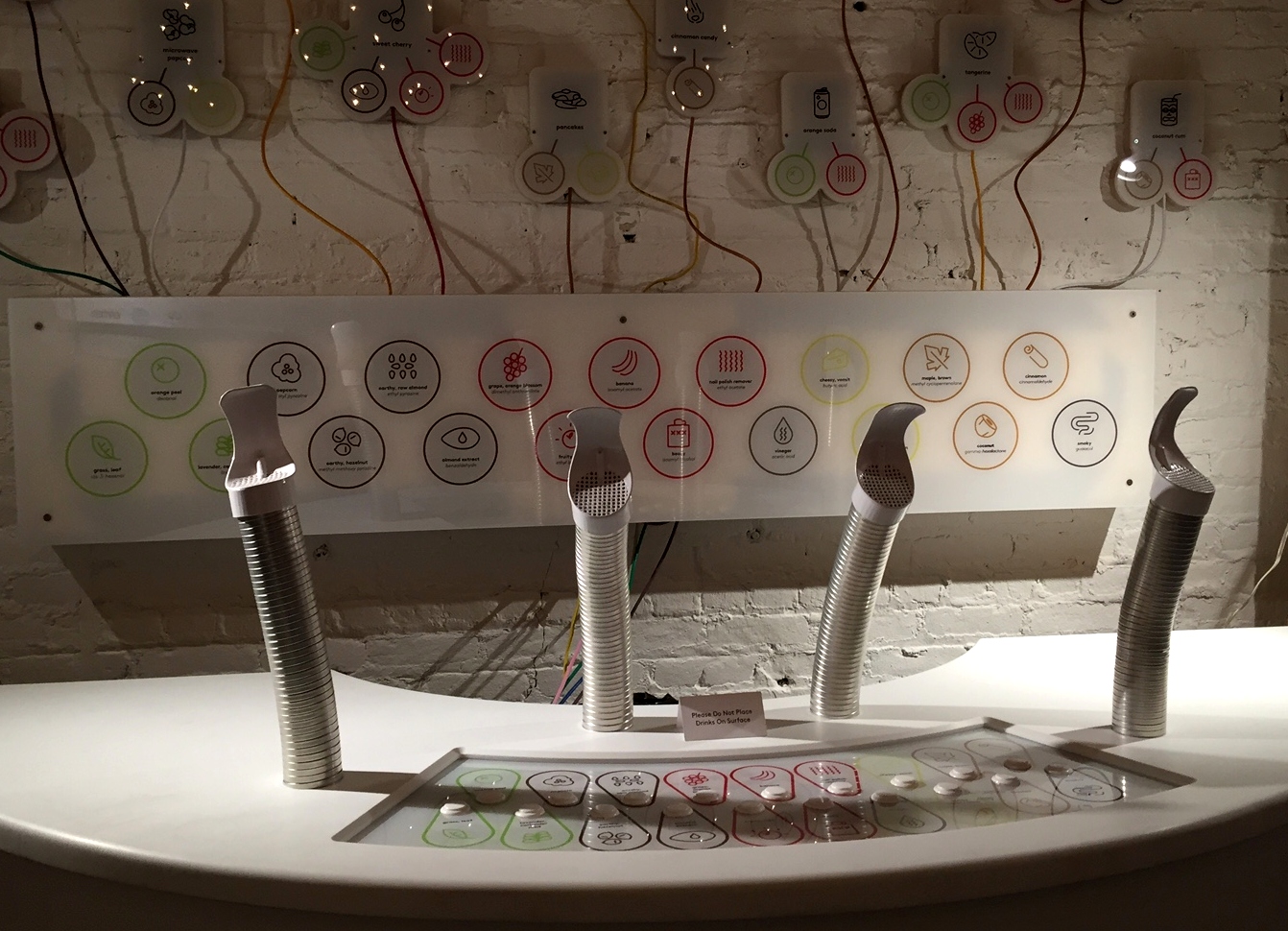 Then Dave Arnold, the cocktail technology wizard who is the museum’s founder, came across a reference to a “Virtual Aroma Synthesizer” in Mark Schatzker’s The Dorito Effect. Developed by Givaudan, one of the world’s largest flavor companies, the aroma synthesizer is a “trumpet-shaped device” that puffs out different versions of flavors, and is used by the company to market-test and refine their products. MOFAD’s team wondered whether a similar machine could be used in their exhibit. However, they soon realized that Givaudan’s proprietary technology wouldn’t be practicable for the museum.