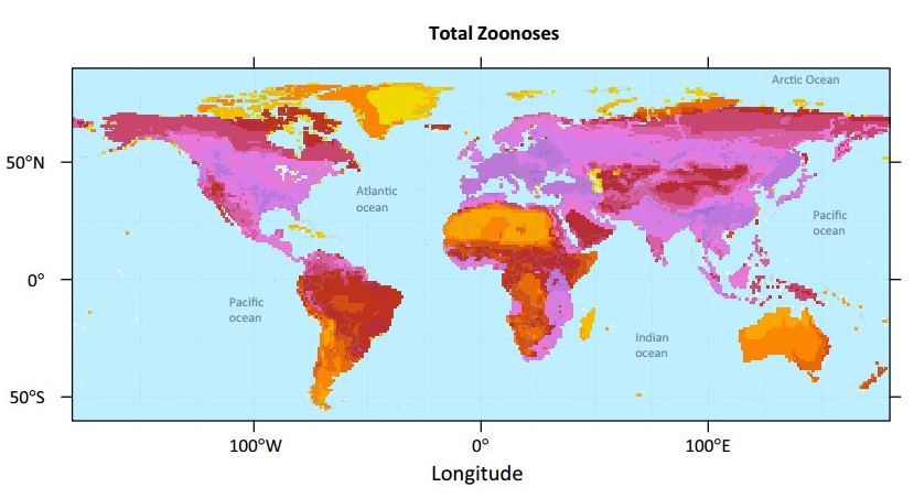 One particular example not mentioned in the paper is hepatitis E virus (HEV). The infection is not usually fatal yet can be a serious threat to pregnant women as in India, up to two-thirds end up succumbing to the disease. The route of transmission isn’t direct contact with live animals but through the ingestion of improperly cooked meat. Based on the potential severity of the disease, any area with a high prevalence of the virus in an animal population would be a hotspot.