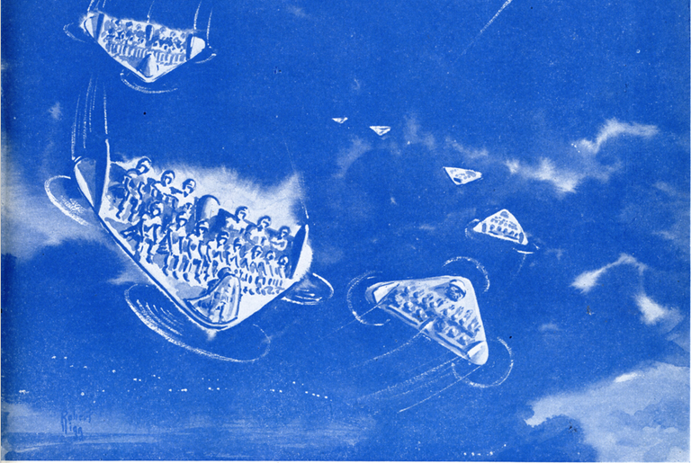 To get around these new and deadly radioactive hotspots, Rigg looks to a plethora of aerial vehicles, everything from nuclear-powered airborne aircraft carriers to light flying platforms transporting 15 soldiers and a driver at a time. Swarms of these platforms would move across a target country in a sort of “aerial blitzkrieg,” seizing airfields and taking over or destroying missile silos, and then retreating when enemy reinforcements arrived. While the Army is still working on hover cars (like it has been since the 1950s), there was another machine that could do the job, and had, by the time Rigg put together “Futurarmy”: helicopters.