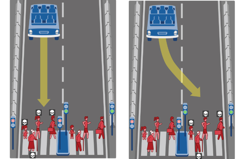 For the “Moral Machine,” there are lots of binary options: swerve vs. stay the course; pedestrians crossing legally vs. pedestrians jaywalking; humans vs. animals; and crash into pedestrians vs. crash in a way that kills the car’s occupants.