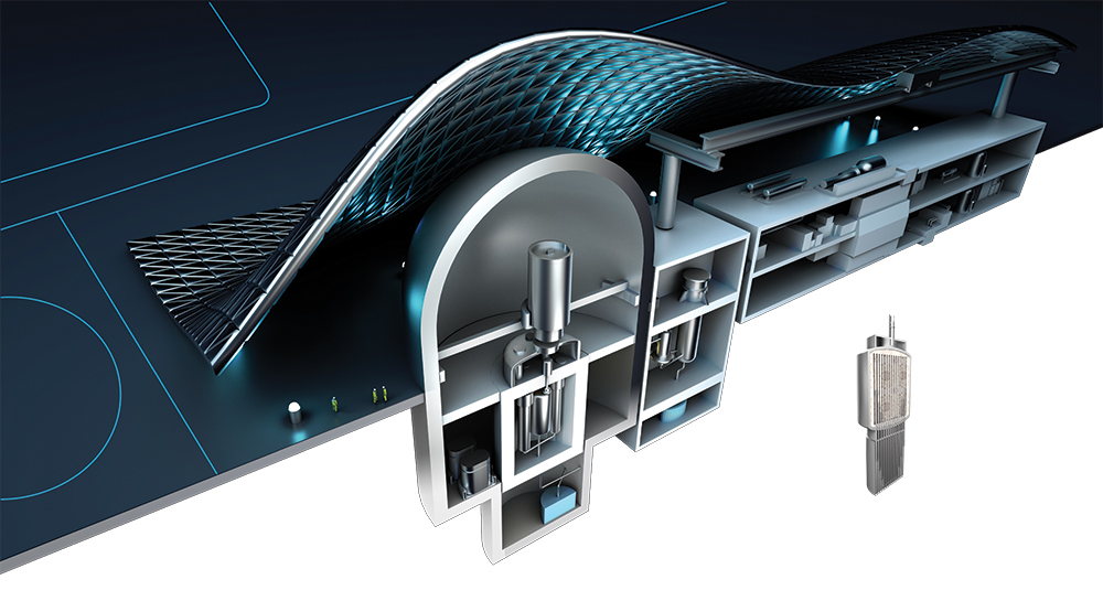 Tubes on either side of the reactor vessel transfer the heat to intermediate pipes, which are filled with clean molten salts. The uncontaminated substance can carry energy without producing any additional radioactive waste.