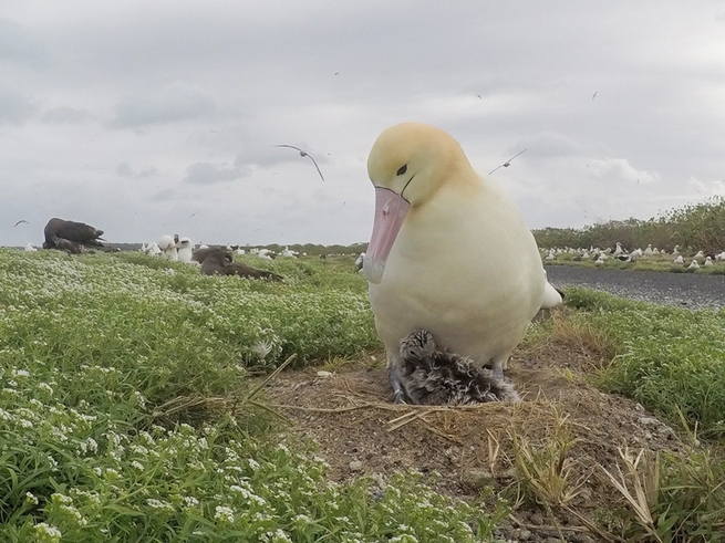 Some mothers don’t raise their own biological children, or even members of their own species. At the end of the year, biologists on an American island in the North Pacific got really excited when a Short-tailed albatross couple had an egg in their nest. It would have been the fourth time that a chick of the endangered species was born on U.S. soil. But once the egg hatched and scientists peered into the nest, they didn’t find a little Short-tailed albatross. Instead, the couple had adopted an egg from a smaller, more common bird, the Black-footed albatross. The researchers weren’t too disappointed—fostering a foundling could be great practice for the first-time parents.