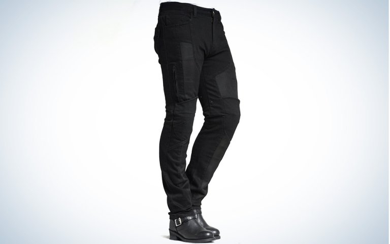 See ItThese Maxler motorcycle jeans are made of a mix of spandex and cotton and have air vents on the sides. The pants also come with hip protectors, have built-in Kevlar protection on your butt, and Kevlar protector pockets on your knees with slots for knee guards.