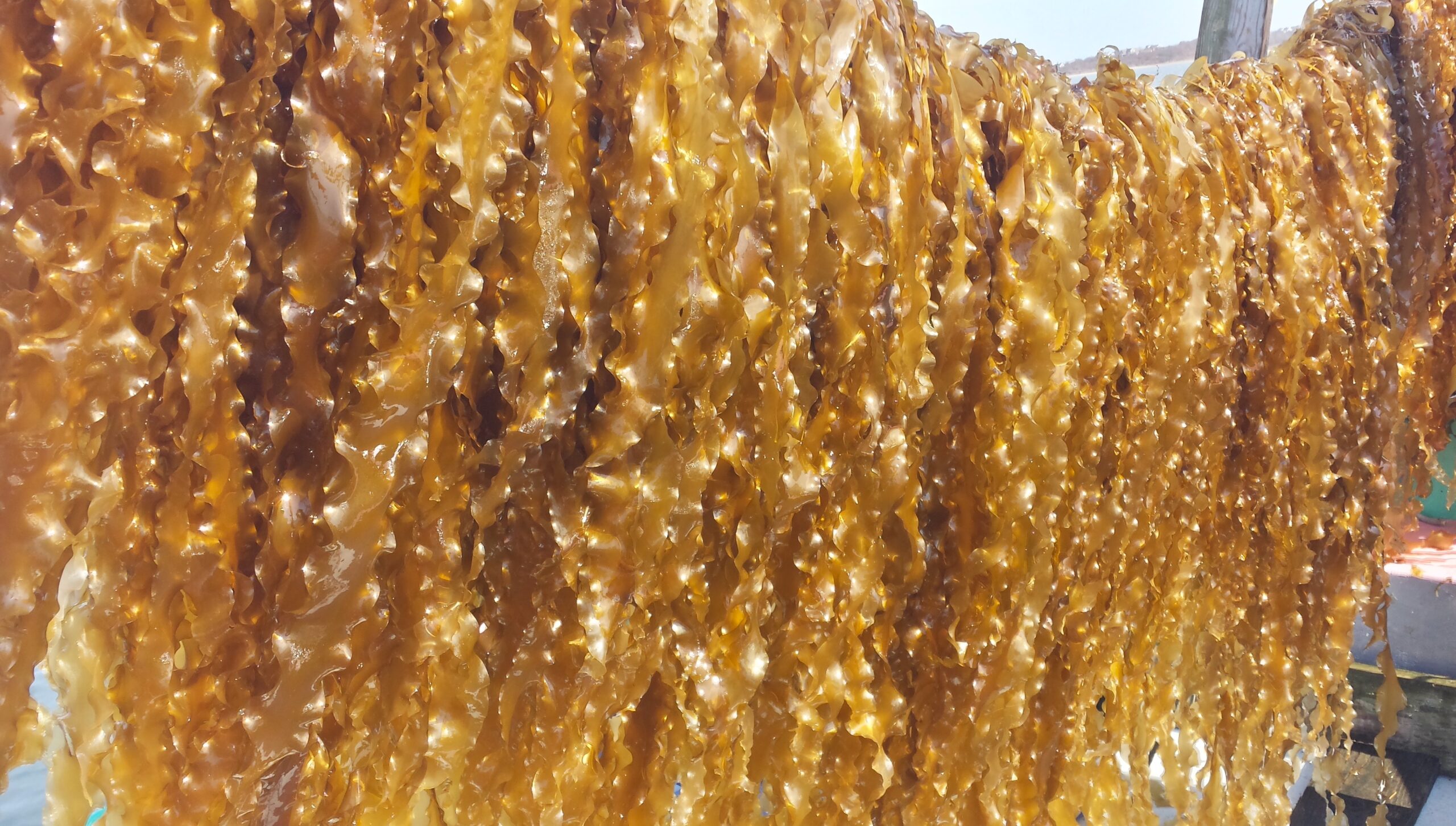 Puckett sells most of what she produces to a Maine food processor, and the remainder to land farmers who use it to fertilize their vegetables. “The kelp is sequestering carbon and nitrogen, so by selling it to the farmers as fertilizer, we are closing the loop,” she said. “We are making the circle complete.” She also keeps some for herself. She uses it in salads, as a substitute for spinach, and as a pizza topping. She also dries it, then bakes chips. “Those never make it out of the kitchen,” she said.