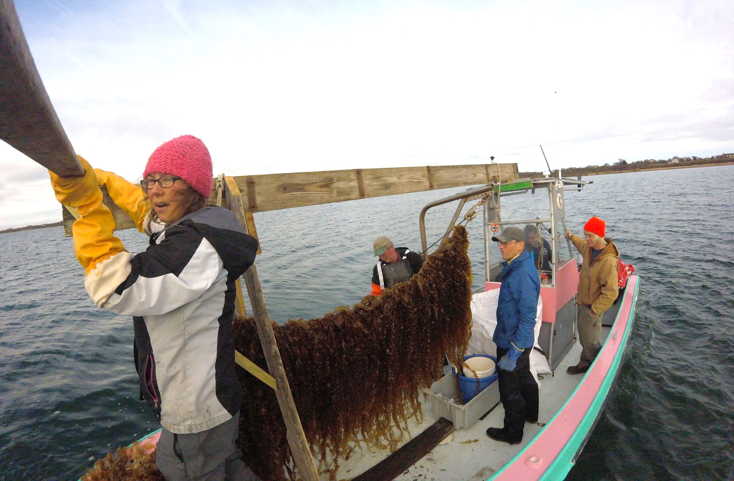 “My kids wanted me to paint it rainbow and sparkle, but I said how about pink?” she said, laughing. “I wanted to make a statement that it was a ‘girl’ boat. There are a couple of guys here who help me with the kelp harvest who tease me — that they have to go out on a girl boat — but they are OK with that. Actually, the men here have known me for a long time, and have seen me go through my growing pains, and have helped me so much.”