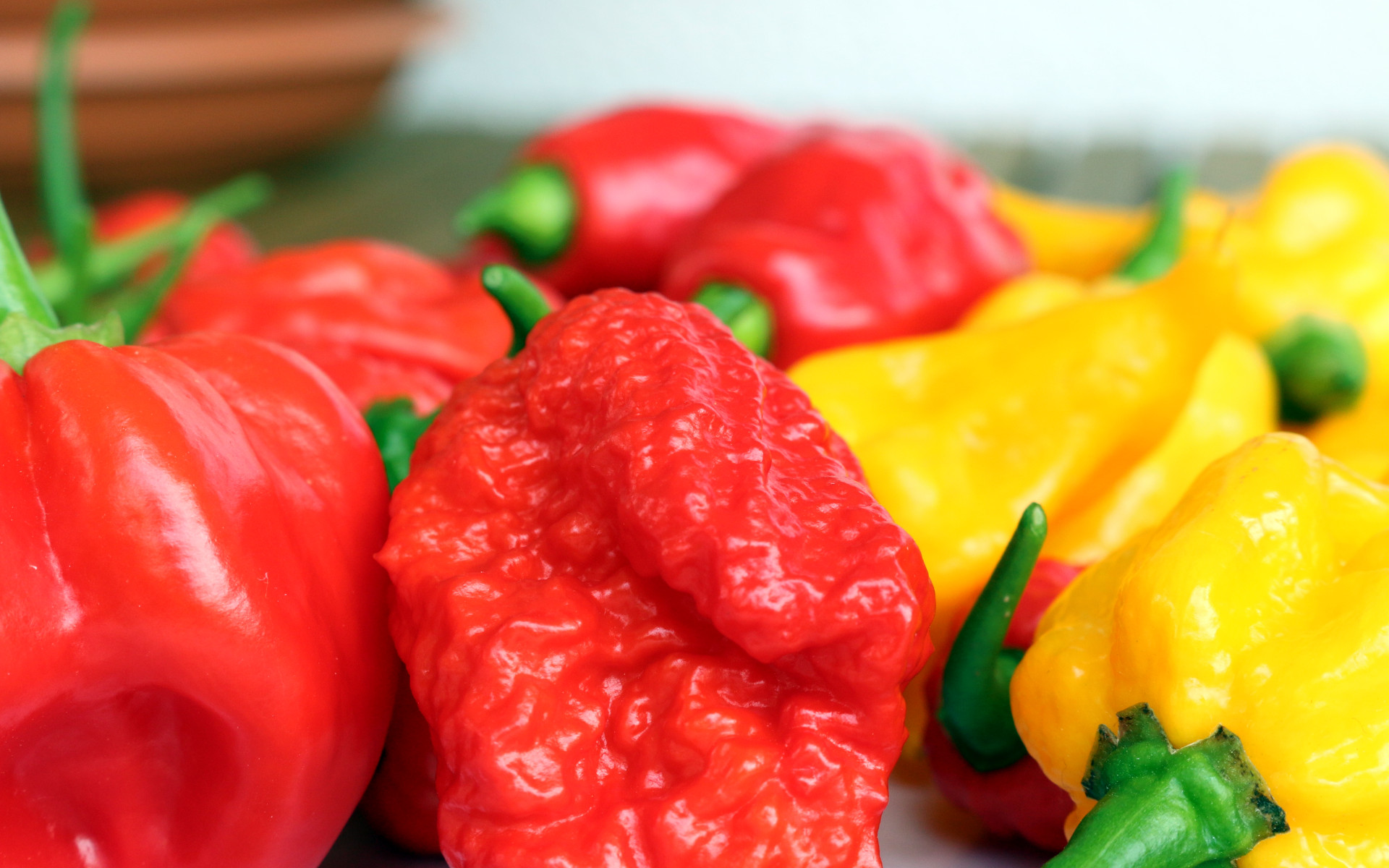 This is not to say that it’s totally wild for a chili pepper to cause such extreme symptoms. The compound called capsaicin in peppers—the substance that makes them taste hot—works by, well, convincing your body that it’s hot. Capsaicin binds to receptors called TRPV1 on some of your sensory neurons. These are the same neurons that register physical heat; they’d prompt you to feel pain if you did something dumb like sticking your hand in a fire. Your body doesn’t differentiate between stupidly putting your hand in a hot place and stupidly putting a deliriously hot pepper into your face—it’s exactly the same sensation. This is why you sweat if you eat a lot of spicy food: your body thinks it’s hot, so it starts trying to cool you down.