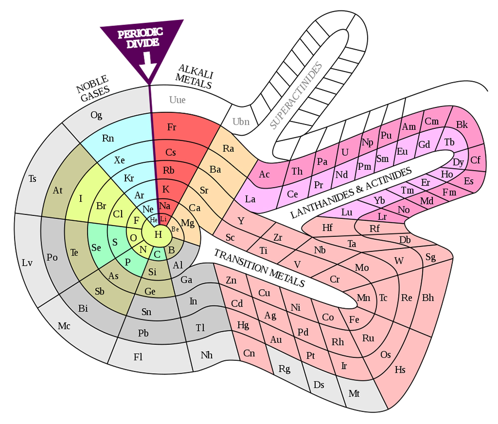 That’s not to say folks haven’t tinkered with layouts, often as an attempt to highlight correlations between elements that aren’t readily apparent in the conventional table. There are literally hundreds of variations (check out Mark Leach’s database) with spirals and 3D versions being particularly popular, not to mention more tongue-in-cheek variants.