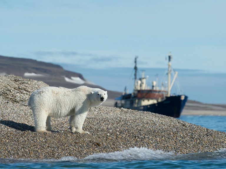 Ice in the Arctic continues to melt earlier, freeze later, and cover less area than ever before. That means polar bears find themselves traveling much longer distances by land—and sea—to find their food.