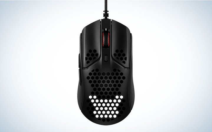 The HyperX Pulsefire Haste’s standout trait is its lightweight design. As the best cheap esports mouse, it’s pretty small and weighs in at just over 2 ounces thanks to its honeycombed chassis. Some manufacturers make ergonomic concessions to hit those measurements, but the Pulsefire Haste manages to stay comfortable and drop down to an esports-grade “fighting” weight. It feels best when used with the claw grip, but isn’t so small that you can’t use it with a palm grip—as long as it fits your hand.