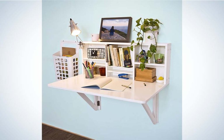 Once you’ve established that folding furniture is the way to go for your small space, there are a few factors to consider when choosing the ideal model for you. First of all, be realistic about just how much space you have. Is there enough to comfortably fit a standing desk, or would a portable desk work better? Next, think about your budget. Can you afford to splurge on something like the aforementioned Hoek Home tabletop, or are you looking for a less expensive option? What about a desk that requires little to no assembly? Is the ability to quickly set up or store away your desk important? Keep reading to find out our top choices.