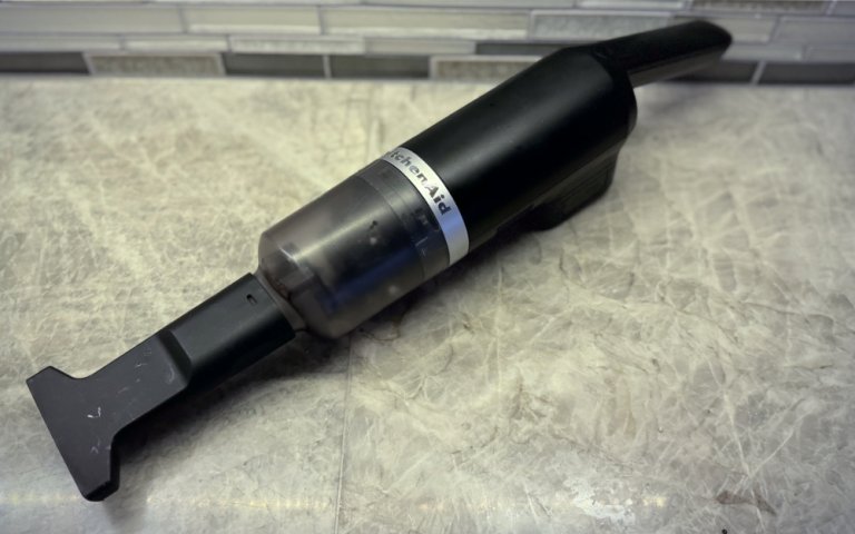 We’re fans of this cordless handheld vacuum’s overall design, but whatever it sucks up ends up in its dirt cup rather than a bag, so we occasionally found ourselves with dust particles on our hands when emptying it out over a trash can. This isn’t a big deal, but something to consider. Overall, KitchenAid’s Go Cordless Kitchen Vacuum has helped us keep our kitchen tidier without much effort.