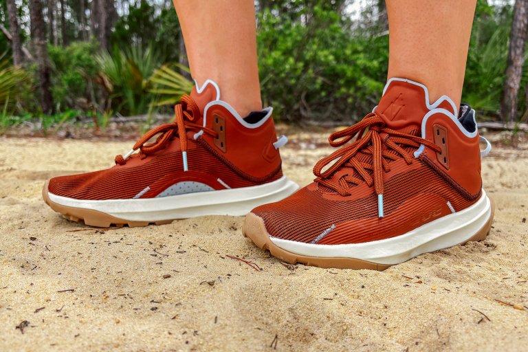 Hiking boots tend to be clunky and heavy, which isn’t always ideal. The Vasque Re:Connect – Here Mid shoes are remarkably lightweight, feeling more like a running shoe than a hiking boot. Despite the lightweight design, they feature a high ankle. It’s not sturdy enough to protect against rolls, but it does keep debris out and protects against scrapes from rocks and twigs, which is very appreciated.