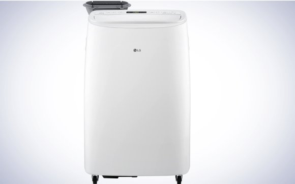 The LG DUAL Inverter Smart Air Conditioner uses the latest technology to allow you to control the climate in your home, making it our best overall pick. An oscillating air vent in this 10,000 BTU LG portable air conditioner circulates cool air efficiently, and dual-inverter technology is powerful but not loud (it operates at 44 decibels). Its dual inverter is not only quiet, but cuts down on the air conditioner’s energy usage by up to 40% compared with other air conditioners.