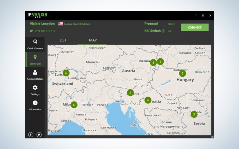 Why it made the cut: IPVanish is the easiest VPN to use for beginners, mostly because its interface is inviting and uncluttered.