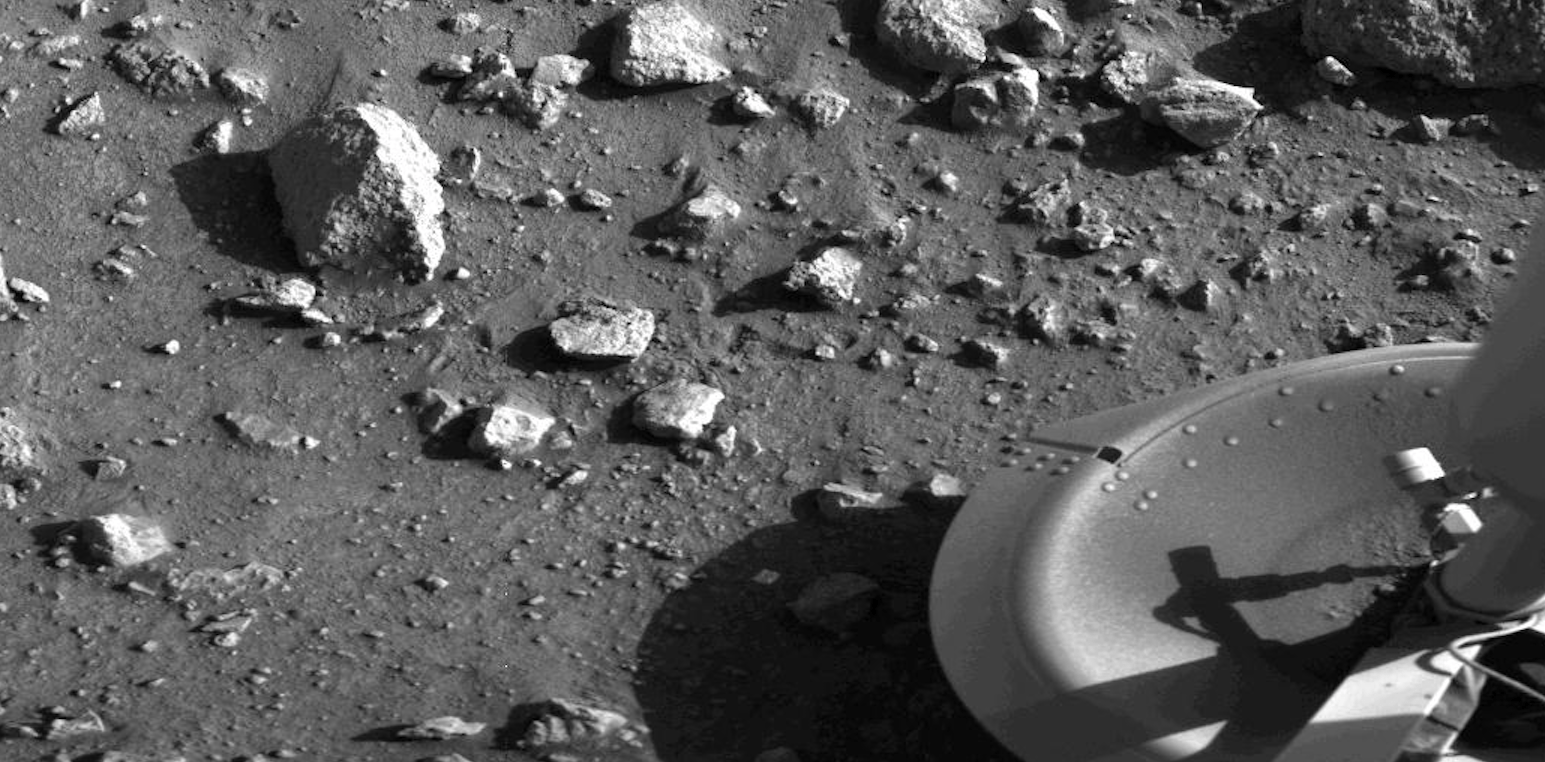 Mars at midday. Or, rather, mid-sol. Welcome to Chryse Planitia, as humans first saw it 40 years ago today, when the first robot from Earth landed on the Red Planet. Viking 1 was supposed to land on July 4, the bicentennial of the Declaration of Independence, but its original landing site was too rocky. The probe orbited Mars a while longer until its human managers could find a flatter, safer spot, and this is the one they came up with.