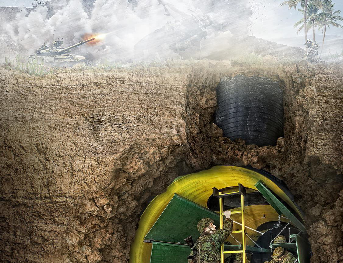 Perhaps the bunker-buyer isn’t looking to quietly outlast a war above. One schematic video from Terramil shows the shelter configured as a small underground barracks, housing soldiers and weapons ready for a counter-attack. To complete a scorched-earth strategem that comes with bunker-based sneak attacks, there’s a rack of landmines for the troops to place in the blasted soil above.