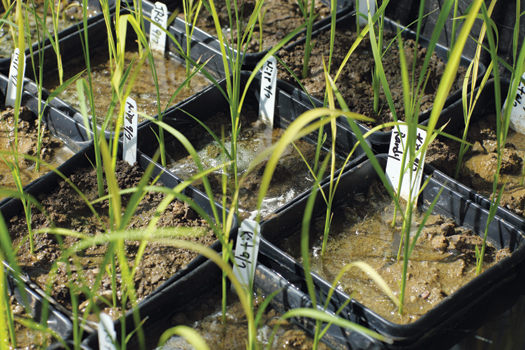 Then, as if to materialize my thoughts, I came across a vast greenhouse. Beneath the great glass roof, full-grown rice plants shot up from black plastic paddies packed with mud and flooded with brown-gold water. The yard-tall flat plants were rough-skinned and pointy-tipped, top-heavy with beautiful green kernels of rice. Each plant had its own label, and I stopped before a particularly tall and vigorous clump called Xa21-106/TP309. This was the first disease-resistant transgenic rice Ronald created, one that she has cultivated in her laboratory for more than a decade. “Many years ago, we gave the Xa21 gene to Chinese breeders,” she had told me. “It was scheduled to be released two years ago, but the agricultural ministry still has not approved it.”