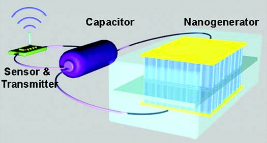 The game-changer here is the fact that this nano-device can generate and store (in a capacitor) enough energy to also transmit wireless signals to a receiver up to 30 feet away via a transmitter roughly equivalent to those in Bluetooth headsets. The idea that something so small might be able to transmit data across distances could lead to new generations of medical sensors powered by a person’s own blood flow, environmental sensors powered by the ebb and flow of atmospheric air, and wearable sensors that run and transmit on the power leftover by the wearer’s own footsteps.