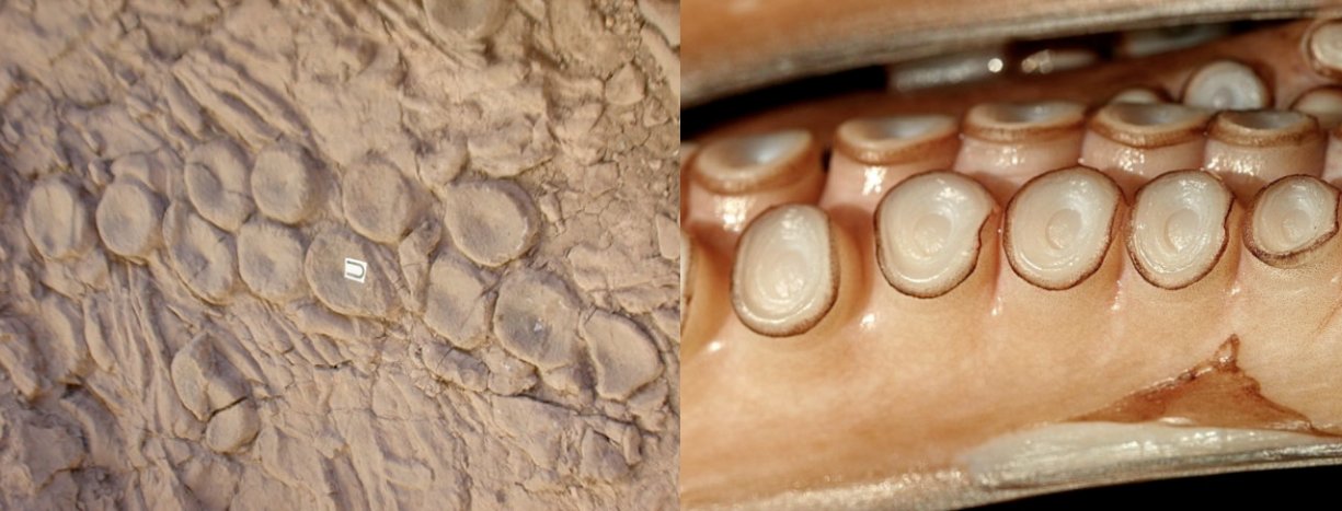 In the fossil bed, the ichthyosaur vertebrae are arranged in linear patterns, with what McMenamin describes in a conference abstract as “almost geometric regularity.” The arrangement resembles the pattern of sucker discs on a cephalopod tentacle, the GSA says, “with each vertebra strongly resembling a coleoid sucker.”