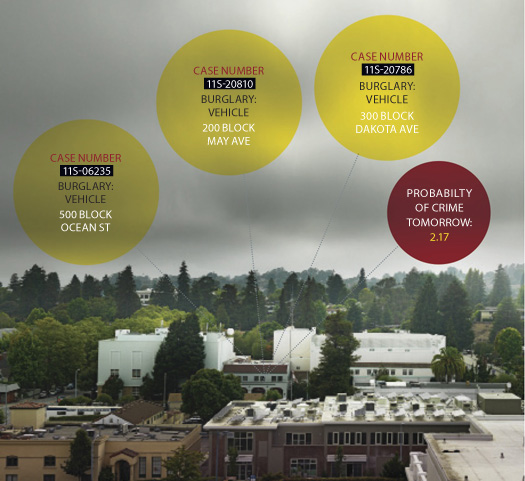 Last year the criminals of Santa Cruz, California, stole 160 cars and committed 495 burglaries. For a city of 60,000, that’s about average. And so are the challenges facing its police force. Since 2001, the SCPD has laid off 10 of its 104 officers, even as the city’s population grew by 5,500. The department now has to do more with less, which is the story of just about every police force in America. But this summer, the way the SCPD fights crime changed. It began a six-month experiment using large sets of data and a sophisticated algorithm to forecast when and where future crimes are most likely to take place—and how officers could be deployed preemptively to stop them.