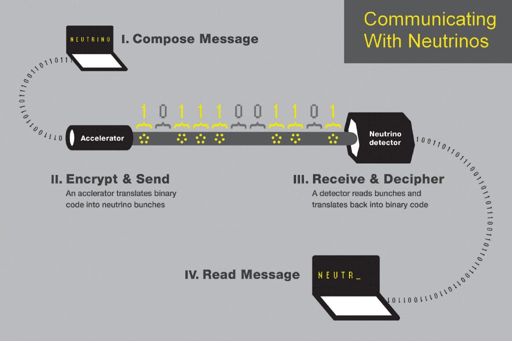 Maybe researchers from the University of Rochester and North Carolina State University could have come up with a more interesting or ominous word, but their breakthrough is pretty impressive. Using neutrinos, you could theoretically communicate between any two points without any cables or wires — through water, which is what makes them an attractive option for marine applications, or even through the entire planet. Chargeless and tiny, neutrinos are unperturbed by obstacles the way radio waves are.