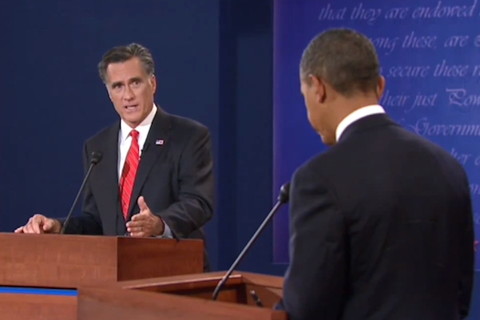 1.) Allow for direct comparison between the candidates–literally, this is the only time the candidates will stand next to each other during the course of the campaign, and that can be instructive. For instance, I’m not sure that most Americans appreciated how much taller Obama was than McCain until they debated each other in 2008. (Romney and Obama are only an inch apart in height, so that won’t matter so much this year.)
