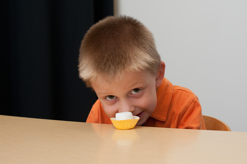 In the reliable experiment, the adult did come back with what she promised: A huge tray of art supplies and a handful of large, nice stickers. Then it was time for the marshmallows. Each toddler was told it was snack time, and that he or she could have one marshmallow right now–or wait, and have two instead. The adult took away the art supplies and put a single marshmallow right in front of the kids, four inches from the edge of the table. What happened next was often hilarious–kids danced, took pretend naps, sang to themselves, even nibbled on part of the marshmallows and turned them over so the evidence would be hidden. One toddler was highly skeptical, Kidd said.